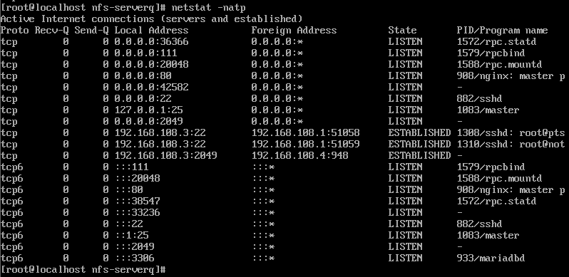 일단 nfs-server 192.168.108.3에선 2049번 포트로 잘 리스닝 하고 있으니 서버쪽 문제는 없다.