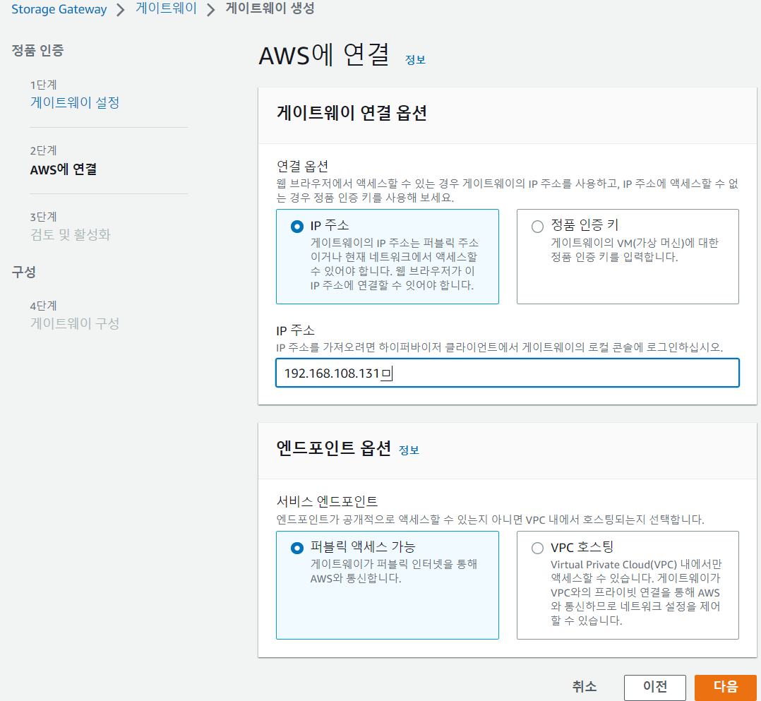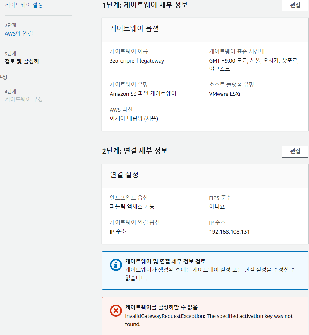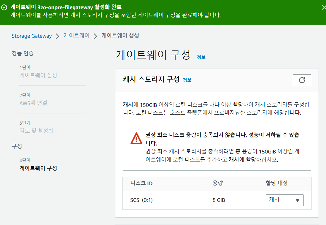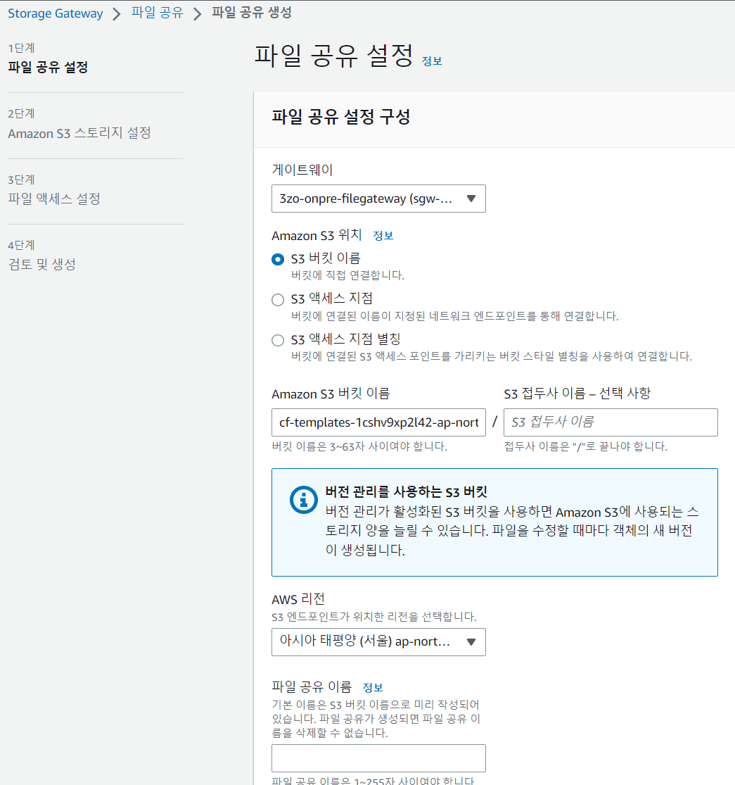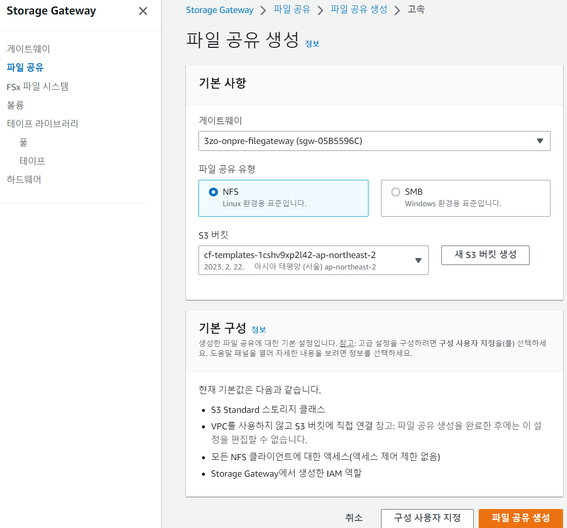 이번엔 S3 버킷에 연결하도록 온프레미스 파일 게이트웨이를 구성한뒤