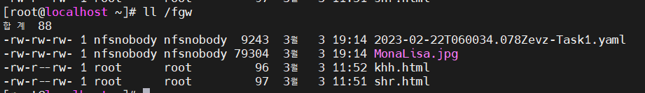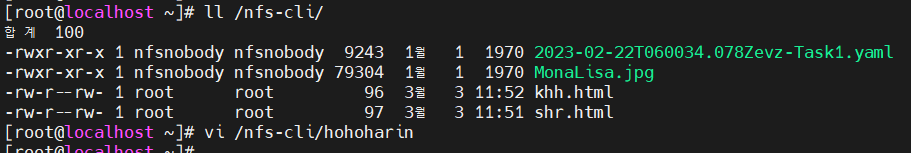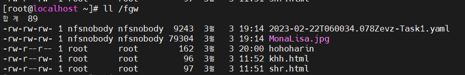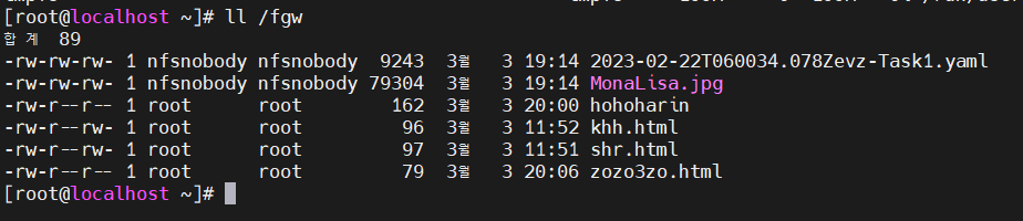 명령어 실행하여 두 NFS 공유에 동일한 파일 집합이 있는지 확인해보겠다.