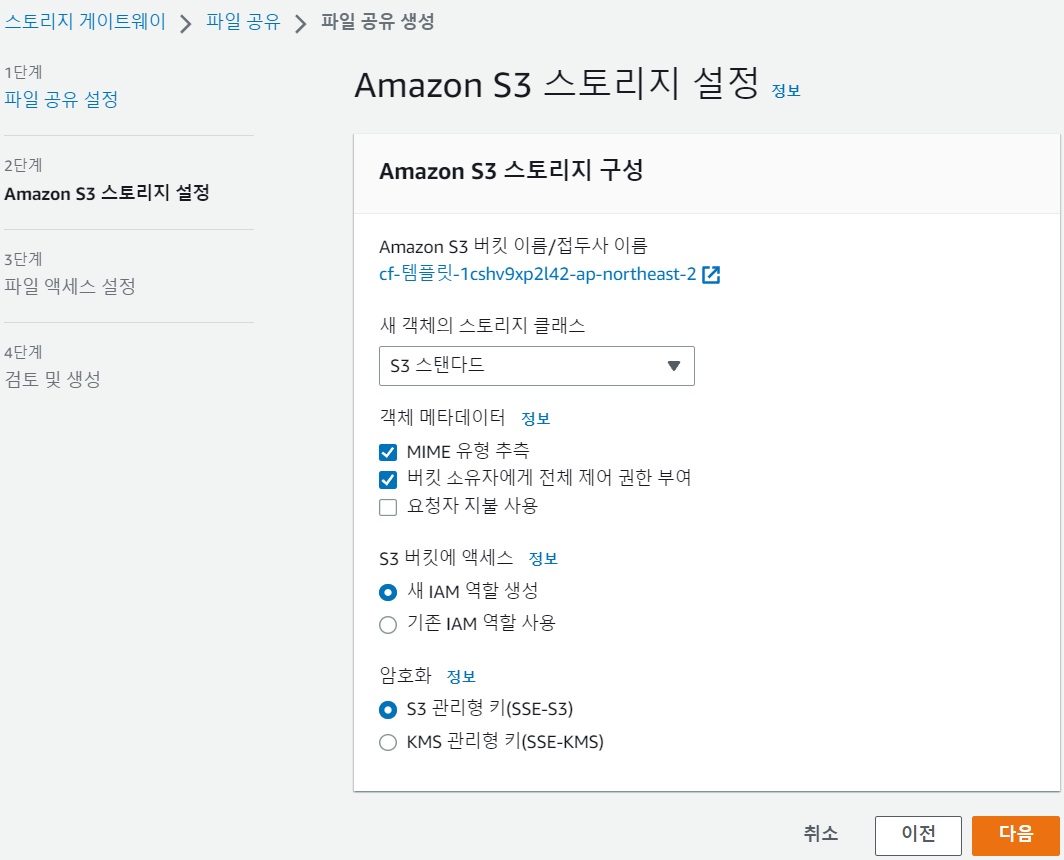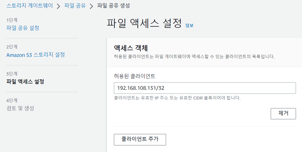 아마 추가버튼이 계속 있는 것으로 보아 여러 객체를 스토리지 게이트웨이에 엑세스 시킬수 있나보다.