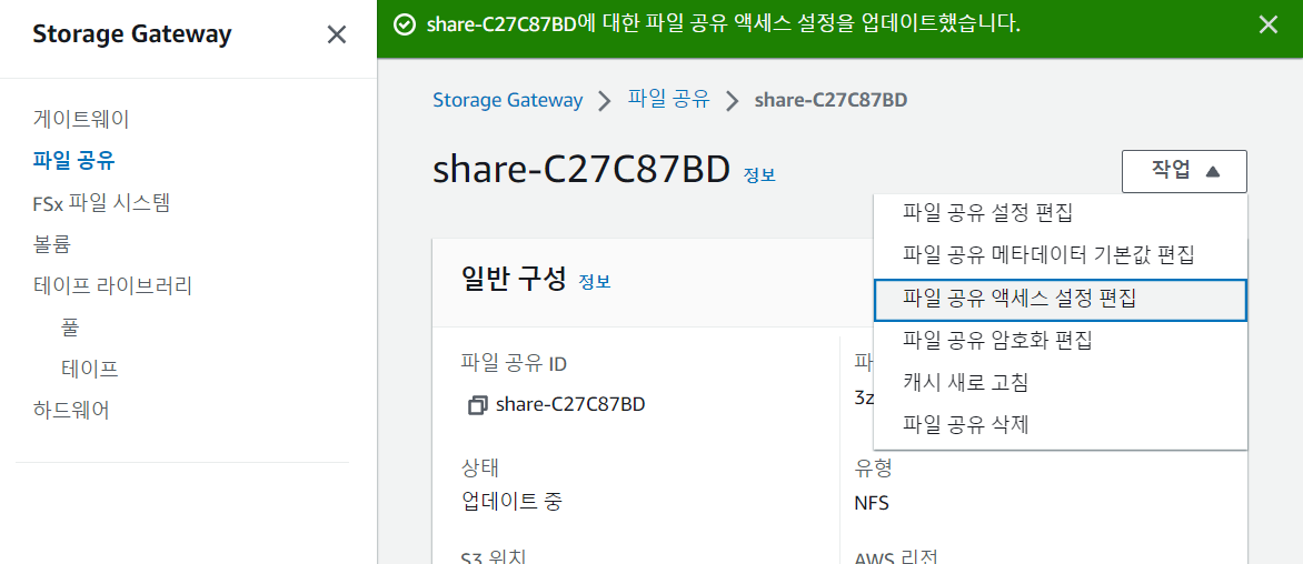 2. Storage Gateway NFS 공유 생성