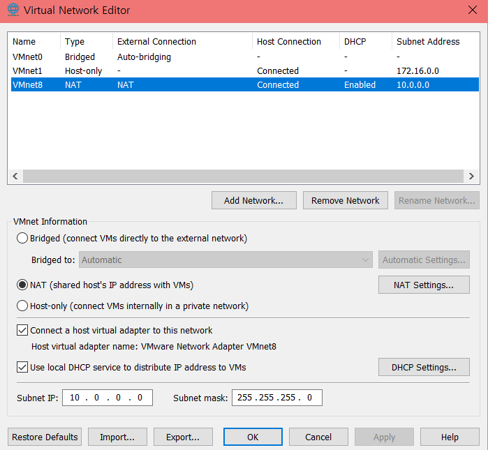 만약 이 화면에서 ip를 잘 안받아오면 아래 DHCP 서비스를 켜주면 받아오기도 하더라.