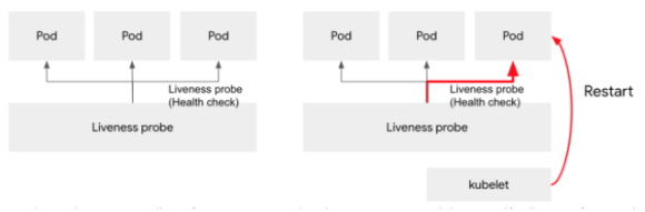 Liveness probe는 Pod의 상태를 체크하다가, Pod의 상태가 비정상인 경우 kubelet을 통해서 재 시작한다.