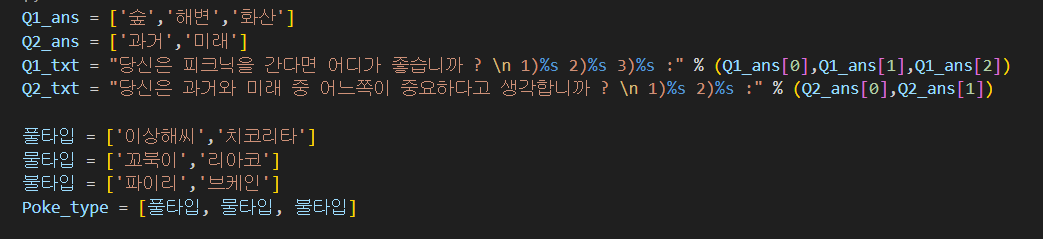 | if문 심리테스트로 포켓몬 정해주는 코딩 (0) | 2023.01.13 |