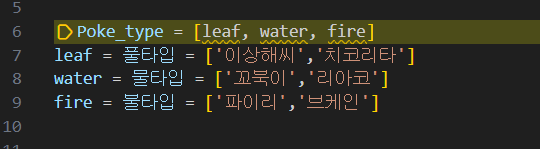 아래와 같이 poke_type에 3종 타입을 넣으려고 하는데 글씨가 파랑색이 안되고 노랗게 경고가 뜬다.