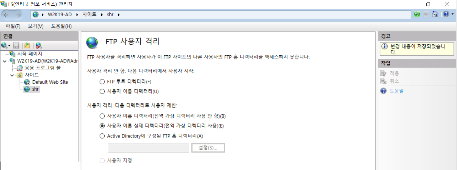 이미 접속중인 사용자는 여기서 허용을 삭제해도 dir이 먹힌다.