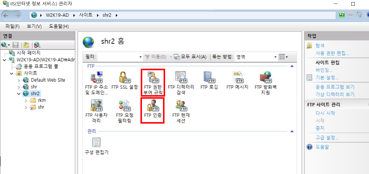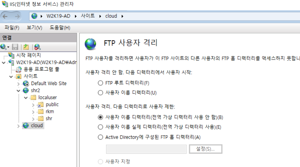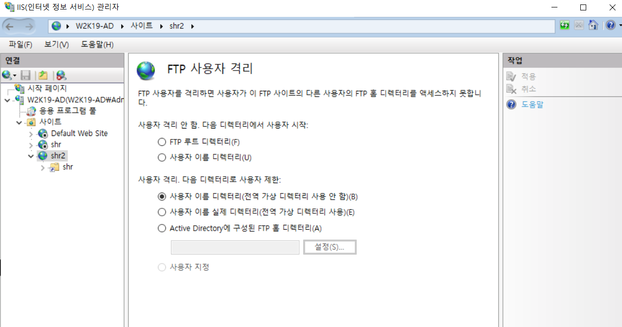 전역설정을 바꾸면 반드시 ftp 서비스를 재시작 해줘야 적용된다.
