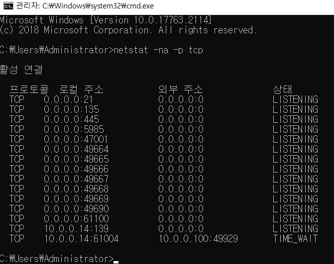 잘 접속이 되고 원하는 포트 정보도 잘 나온다.
