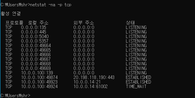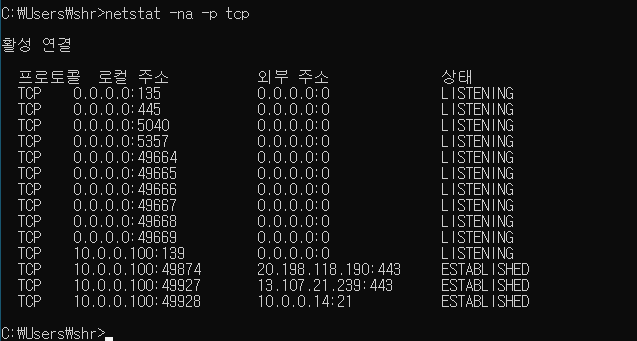 업로드나 다운로드를 하면 아래와 같이 61000번대 포트로 활성됐던 흔적이 생긴다