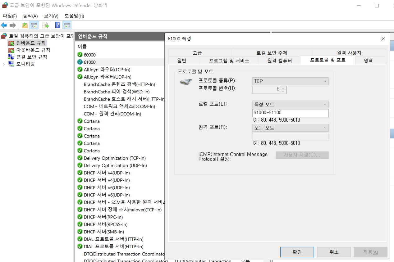 패시브모드 에선 20번 안열어도 접속 돼야하니까 방화벽 허용에서 지워준다.