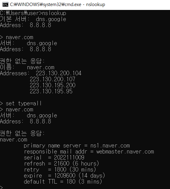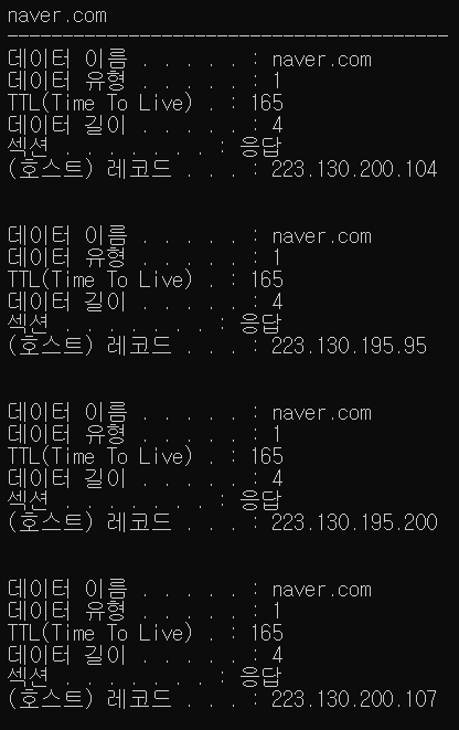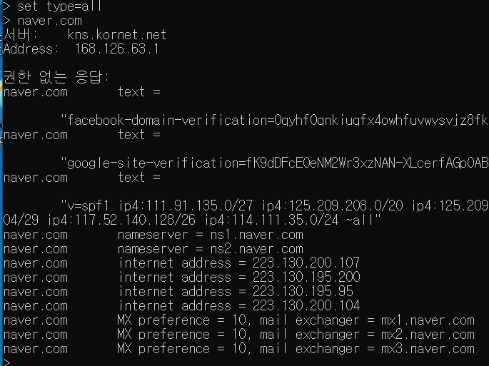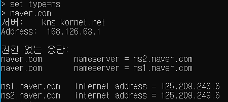 네이버는 대놓고 도메인을 ns1, ns2 라고 이름을 보여준다.