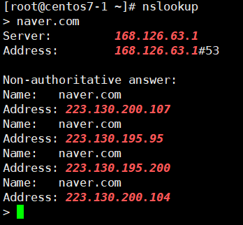 리눅스에선 DIG 명령어가 nslookup 보단 좋다.