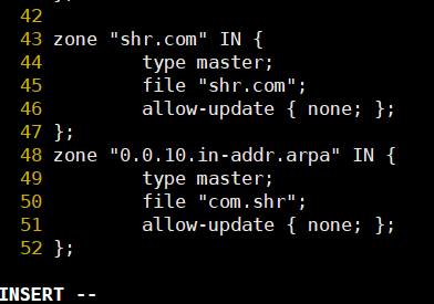 # vi /var/named/com.shr