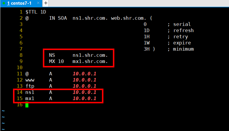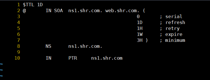 # vi /var/named/shr.com