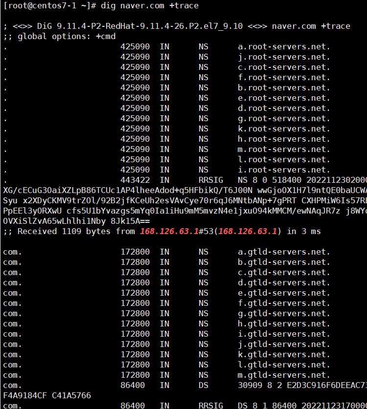 # dig naver.com +trace