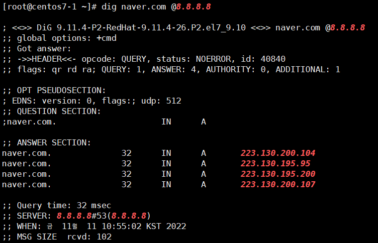 # dig naver.com @8.8.8.8