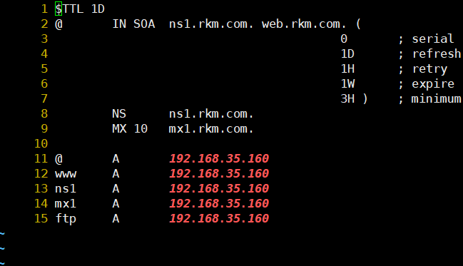 - @ 은 오리진 도메인을 의미하고 named.conf에 설정된 도메인명을 써야 한다.