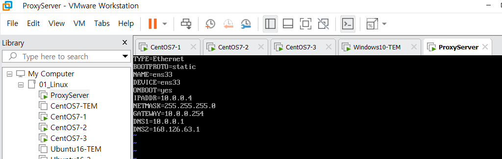 프록시 서버를 템플릿 클론으로 생성 후 어뎁터 카드 추가