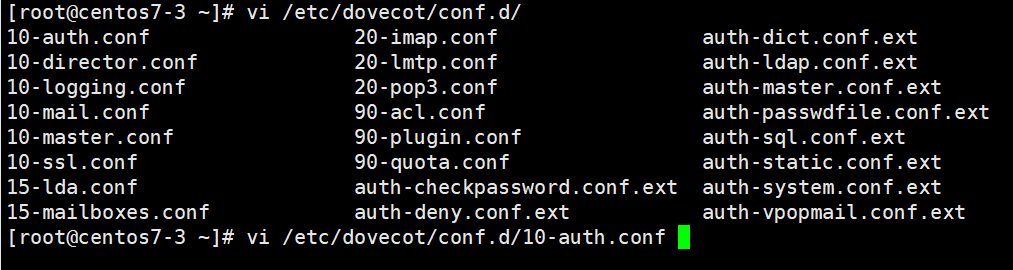 # vi /etc/dovecot/dovecot.conf