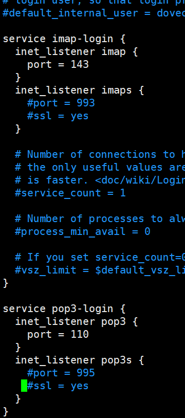 # vi /etc/dovecot/conf.d/10-master.conf