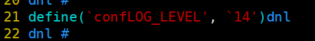 21 dnl 주석을 지워주고 레벨을 14로 바꾼다.