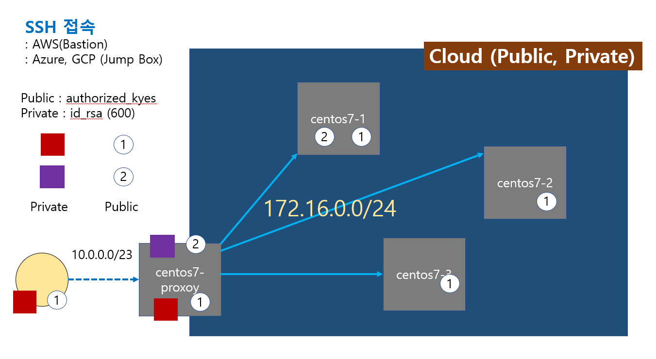 10.0.0.0 대로는 사용자가 머신 1~3에 직접 접속하는 것이고, (빨간 대칭키 검증)