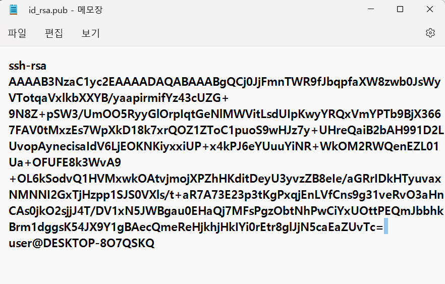 id_ rsa.pub는 공개키다. 접속처의 자물쇠 역할을 한다.