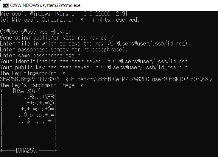 아래는 cmd로 ssh rsa 접속 해본것.
