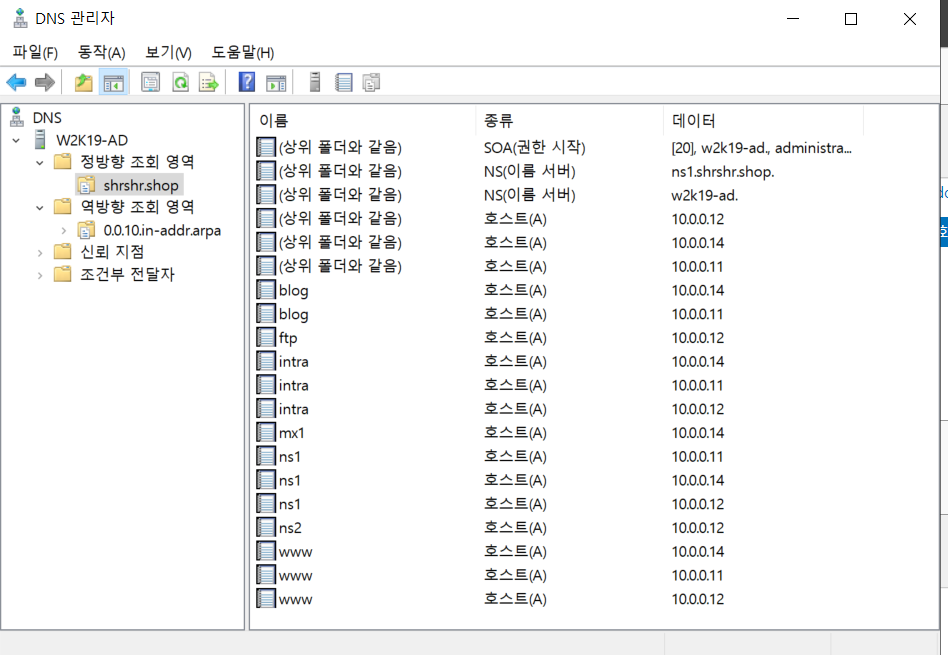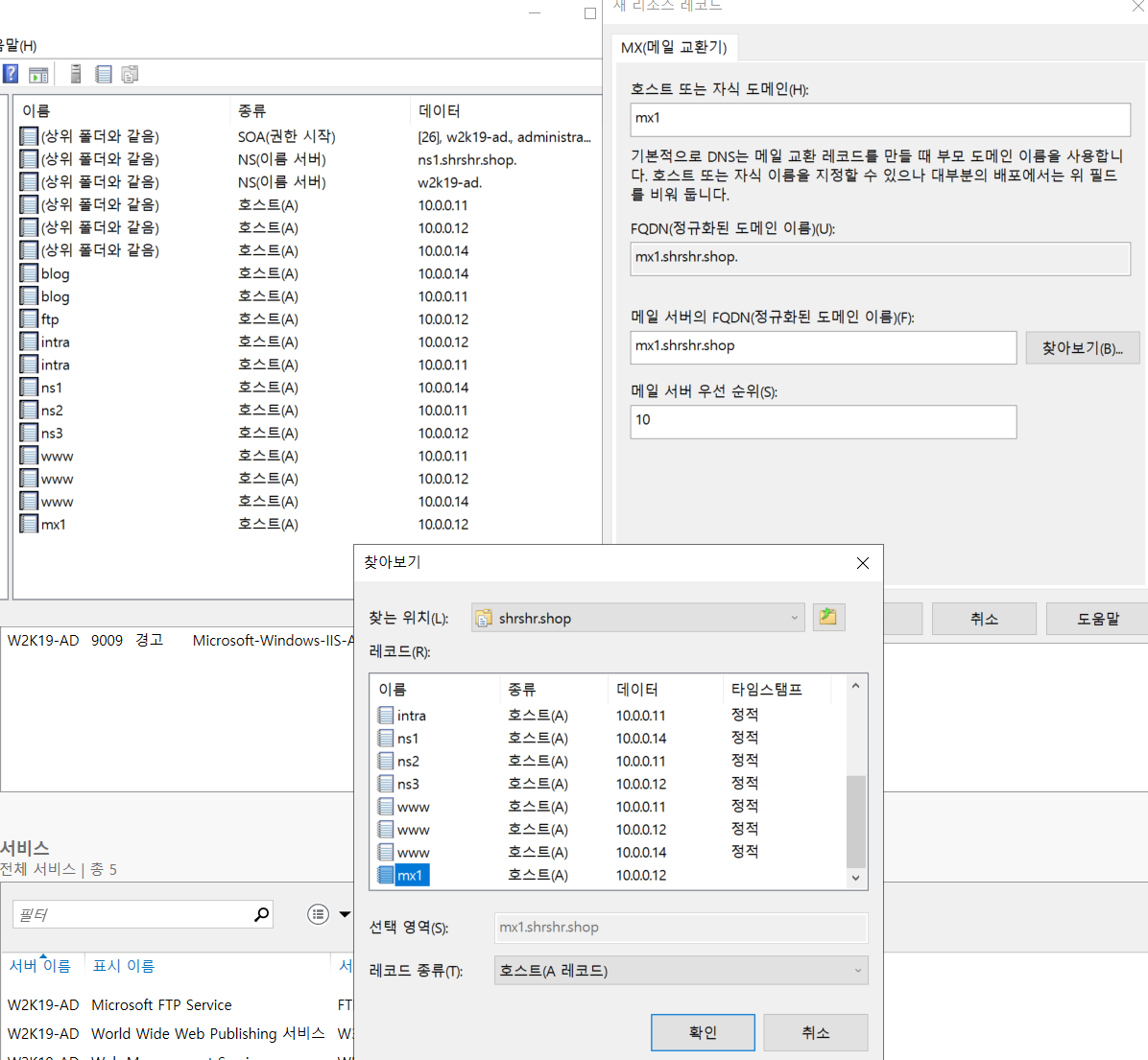 mx1 MX(메일 교환기) [10] mx1.shrshr.shop 으로 뜨면 성공이다.
