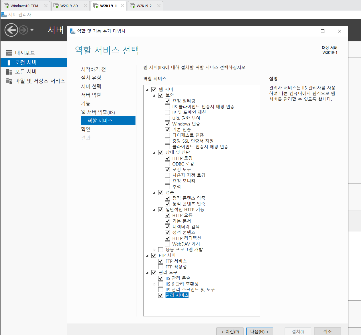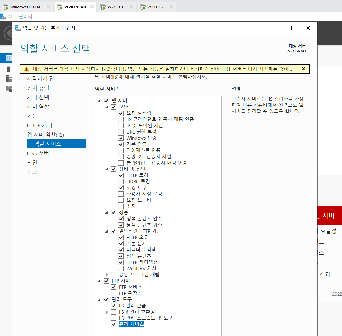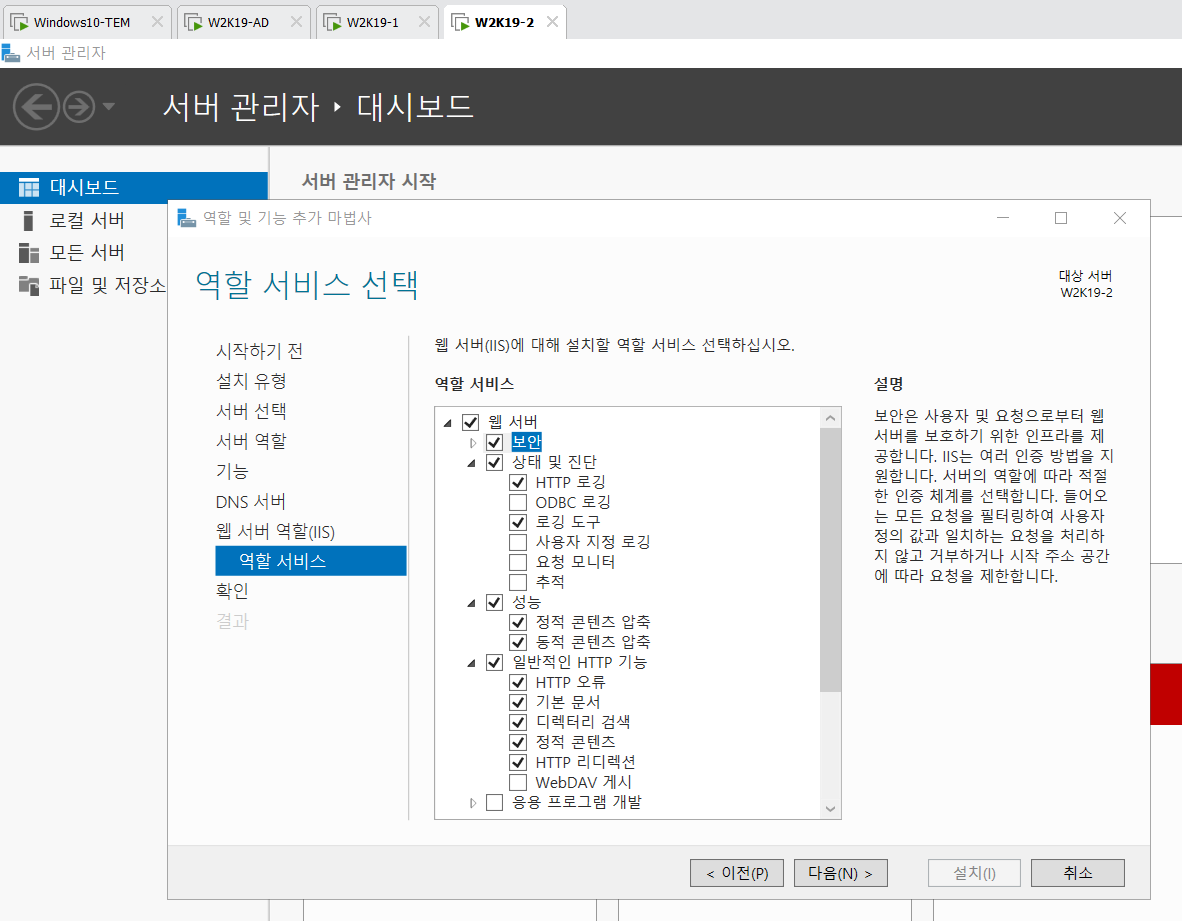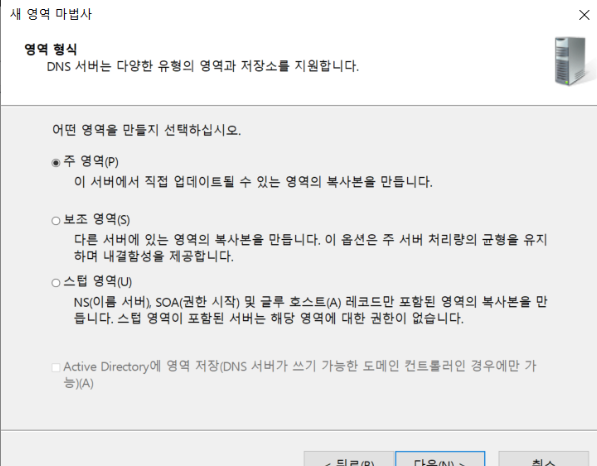 아래 사진에 안나와 있지만 서버 역할 선택에서 DNS도 체크하여 설치해 준다.