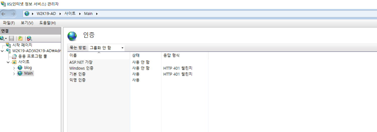 메인은 다음과 같이 IP로 접속하기 때문에 익명인증을 열어줘야 한다.