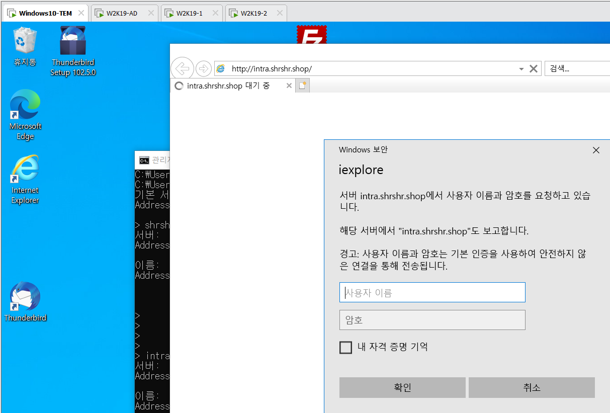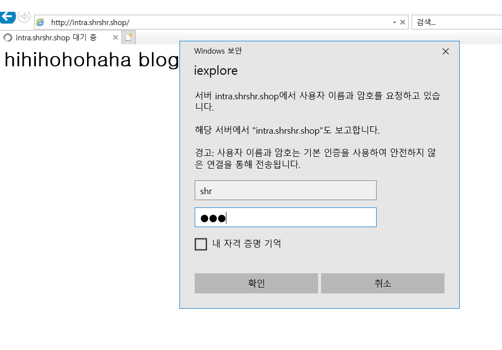 계정인증이 적용되었기 때문에 아래와 같이 인증창이 뜬다.