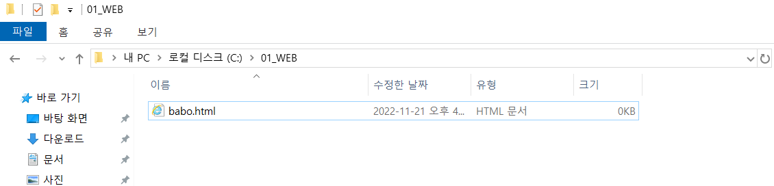폴더 윗쪽을 보면 파일 확장명 보기 체크 후 확장자까지 (.TXT) 싹 지우고 HTML로 만들 수 있다.
