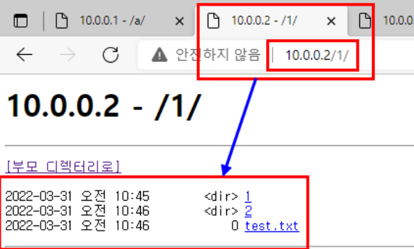 접속해서 다음과 같이 주소를 치면 하위에 있는 '1'이라는 폴더 아래의 내용물이 보인다.