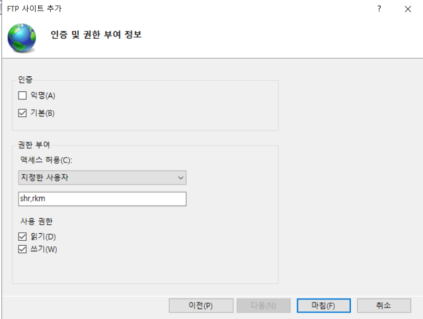 예전 Windows FTP Server를 구성할때와 비슷하므로 폴더를 재탕하도록 하겠다.