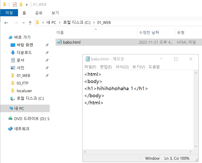 아래와 같이 html로 열심히 꾸며준 메모장을 확장자만 html로 바꿔준다.