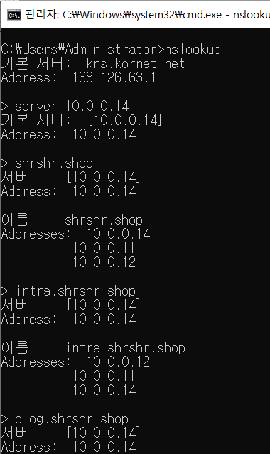 참고로 nslookup 에서 DNS1로 제일 먼저 검색하려고 시도하기 때문에 원하는 결과가 안 뜰수 있다.