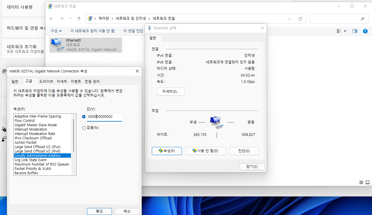 12자리의 설정하고 싶은 멕 주소를 입력한다.
