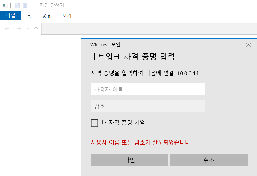 아래에 원래 있던 공유폴더 서버의 계정으로 로그인 한다. (a로)