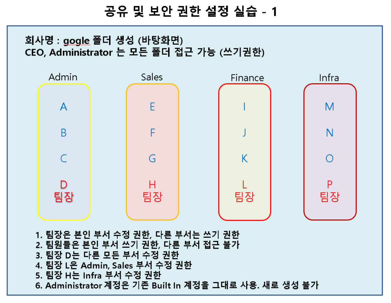 팀장그룹, 부서별 그룹 이렇게 하면 다수의 계정에 권한 부여하는 데 컨트롤이 쉽다.