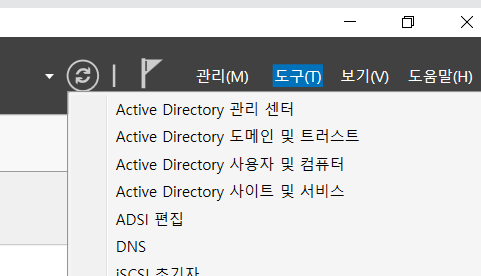 만약에 실수로 닫기 눌렀다면 서버관리자 오른쪽 위 노랑 경고창을 눌러 승격