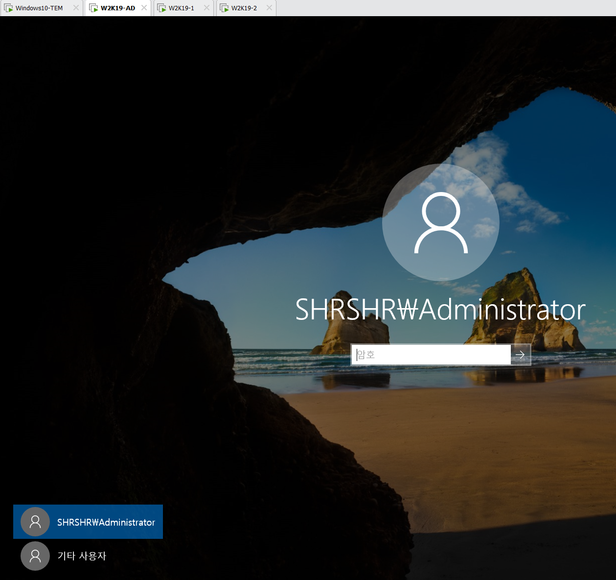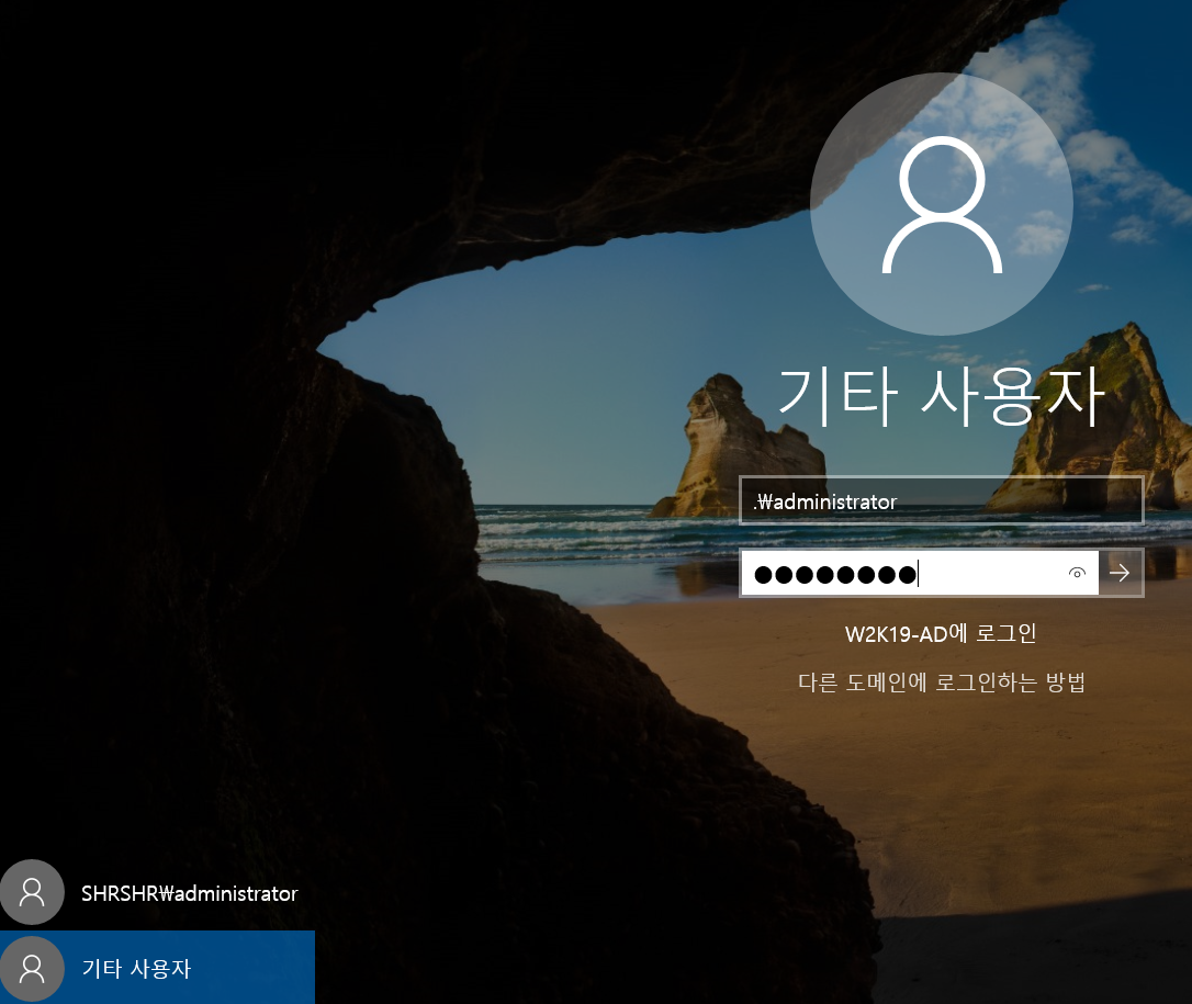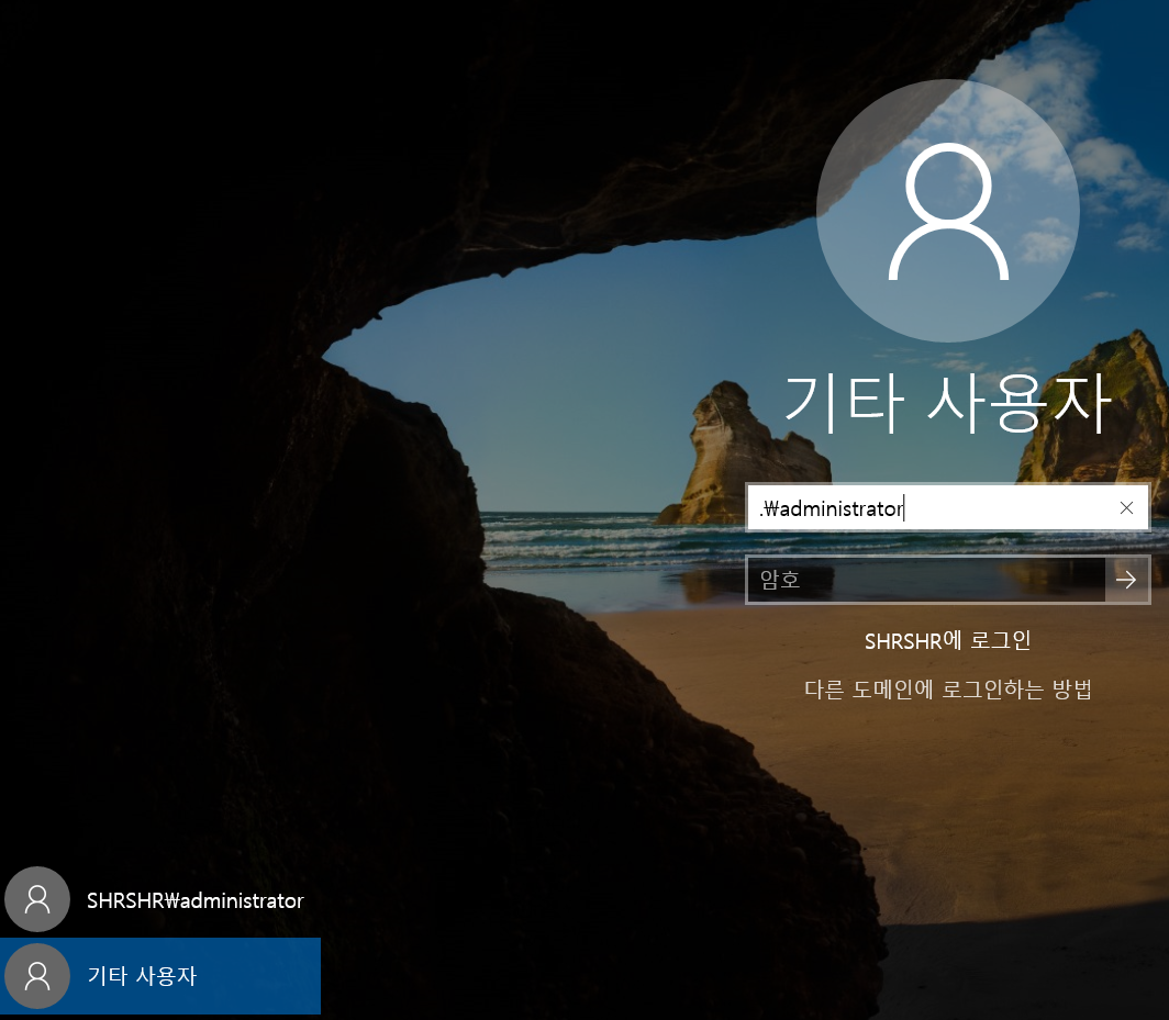 SHRSHR\administrator 로 로그인 하자.
