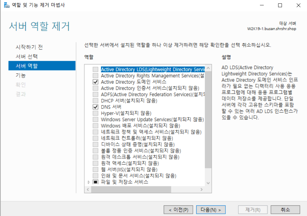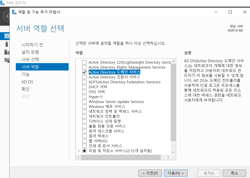 이것만 설치해줘도 DNS는 자동으로 기능이 추가되기 때문에 DNS 항목은 따로 체크 않는다.