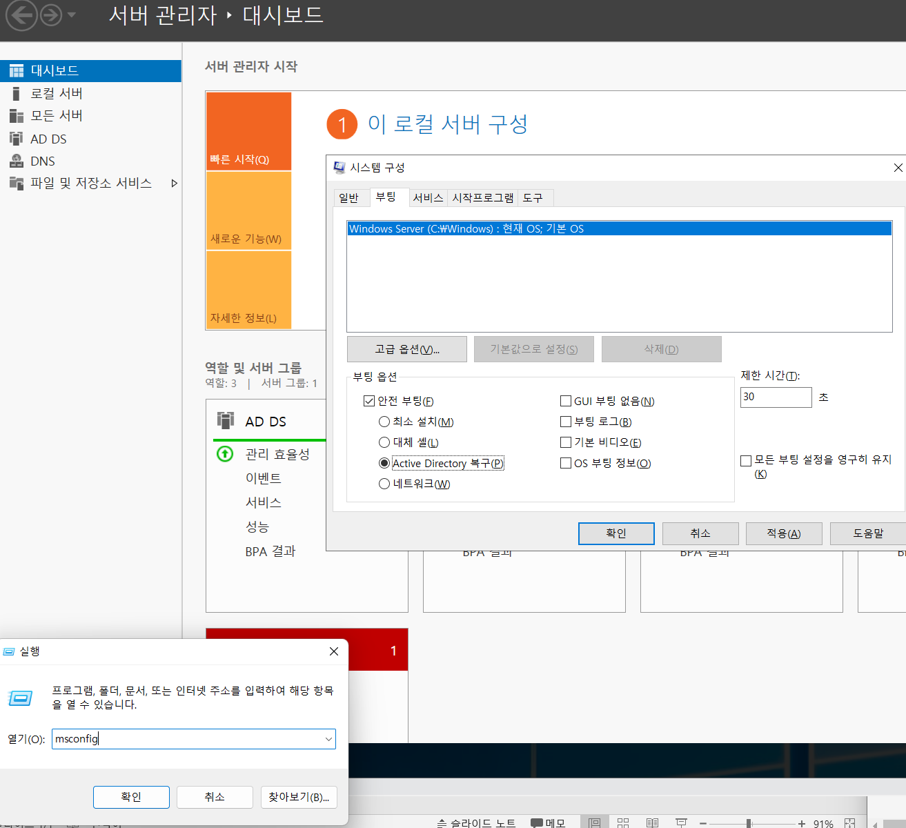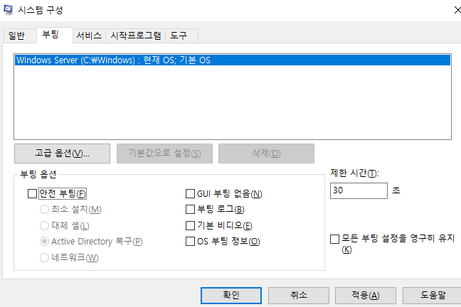 다시 msconfig 로 들어가서 안전부팅에 체크해제하고 다시시작해서 돌리자.