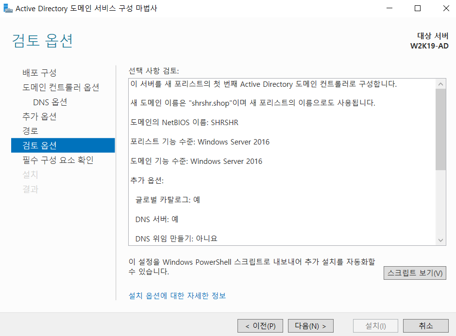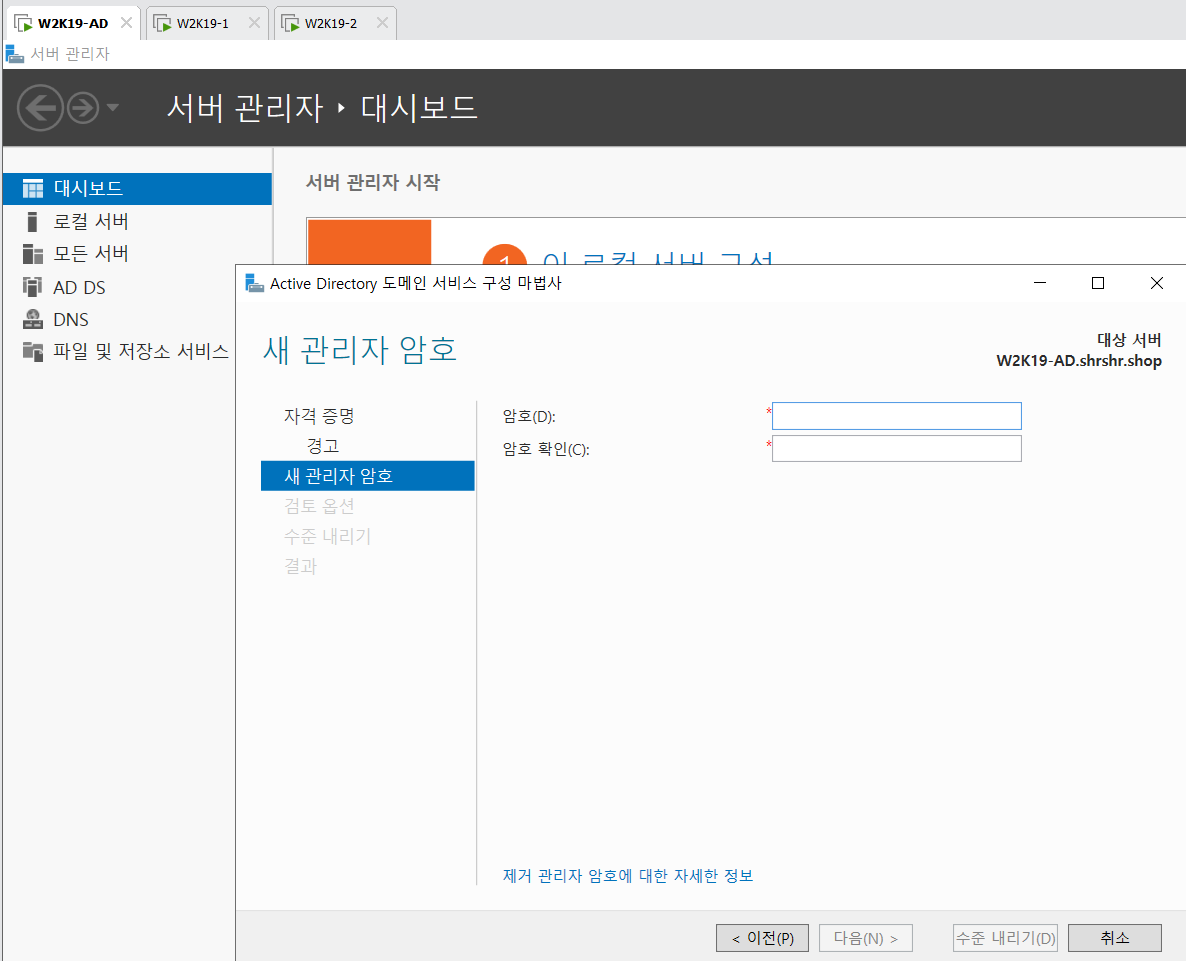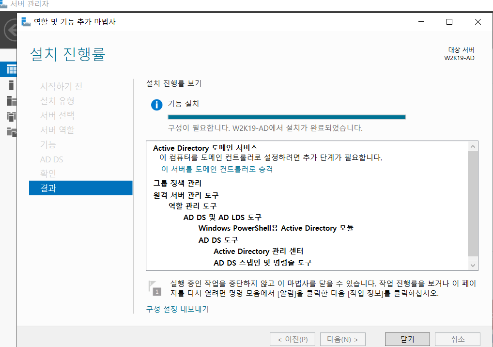 파란색 글씨인 '이 서버를 도메인 컨트롤러로 승격' 클릭.