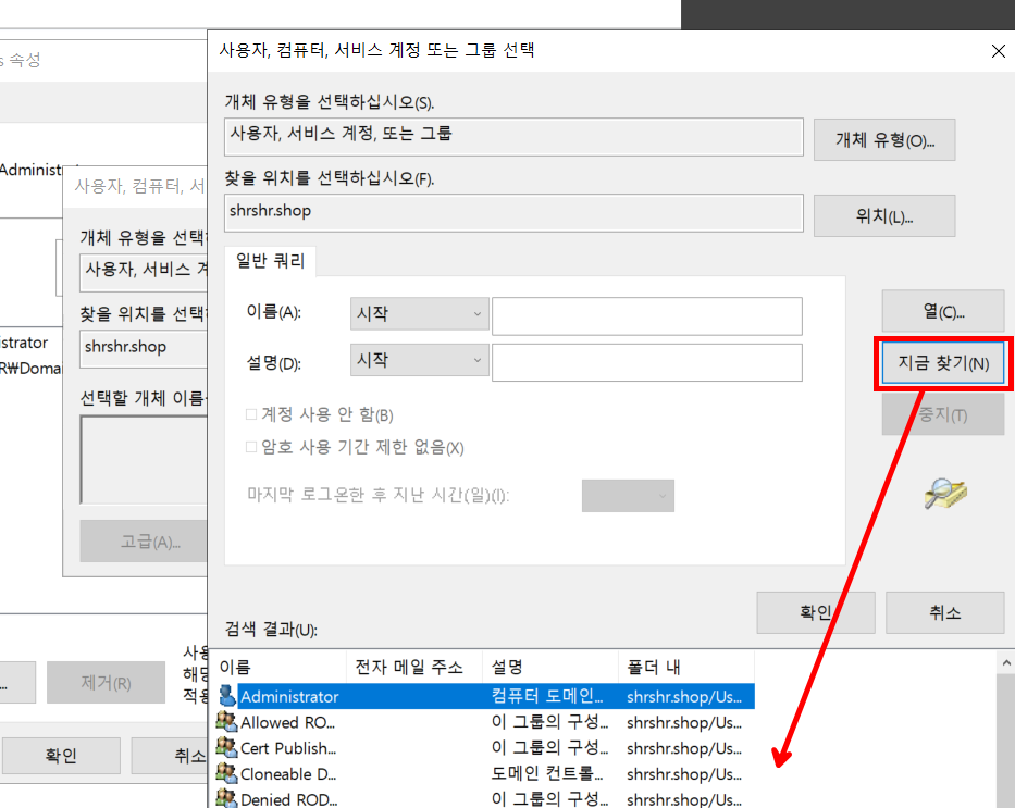권한이 있는 도메인컨트롤러 계정 로그인을 해야 한다.