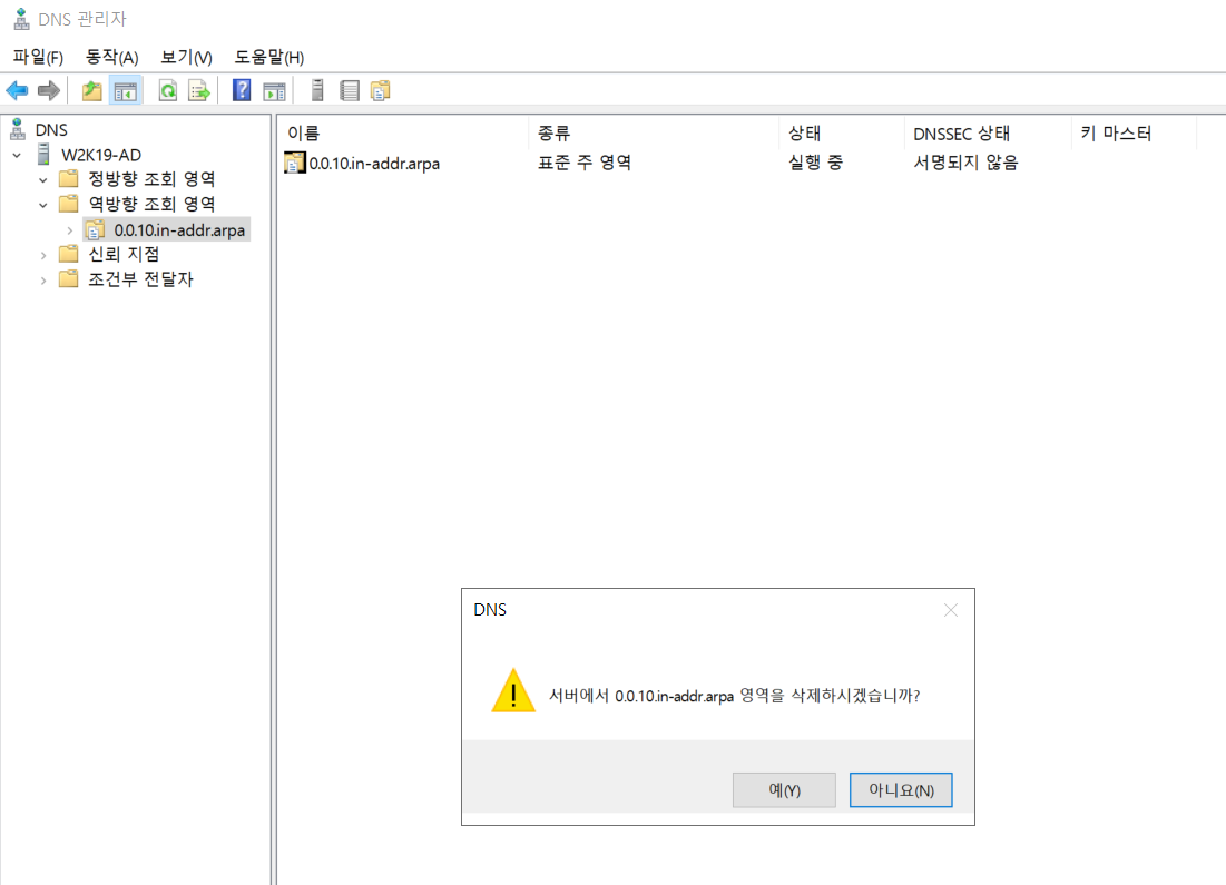 기존 DNS를 삭제할때 반드시 정방향과 역방향 존파일 만들었던 것을 싹 삭제하고 AD를 시작해야한다.