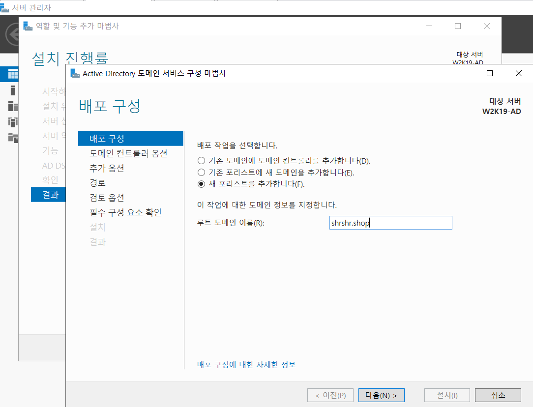 만약 이런 구조가 아니라면 처음으로 가서 존파일 다 지우고 AD부터 다시 설치해야한다.
