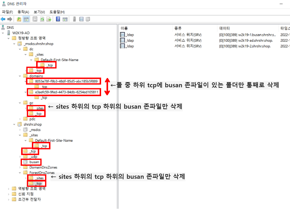 아래에 하위로 열린 tcp폴더 부분은 모두 자식도메인의 흔적이 남아있다.
