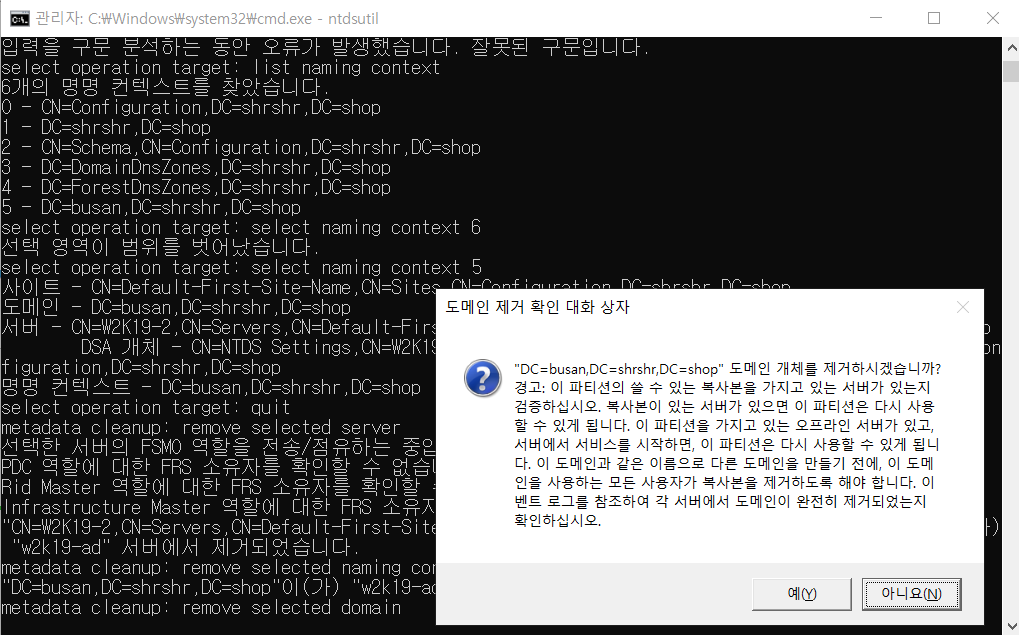 반드시 서버부터 지운 다음 네이밍 컨텍스트를 지우는 순서여야 한다.